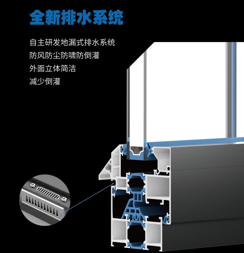 我們新上市的智能門窗,在排水設計上都會采用科學的排水設計結構,不同于以往的排水設計。在外觀性上,不再設計明顯的排水槽口,隱藏式的排水美觀耐看,排水的動力、壓力也會加大,讓雨水能夠順暢排出室外,避免雨水倒灌進入室內。